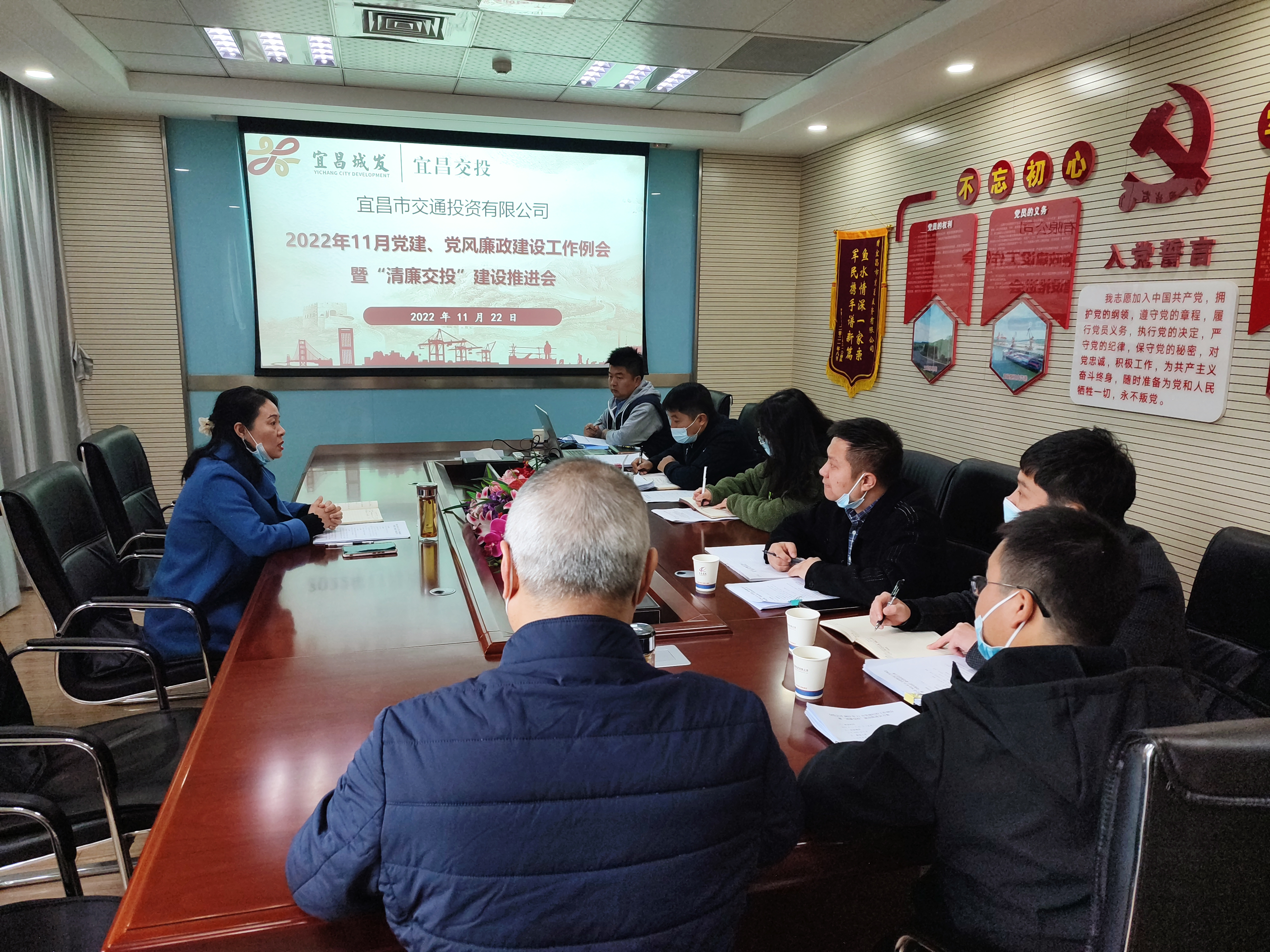 四、11月22日,交投公司組織召開黨建、黨風(fēng)廉政建設(shè)工作例會暨“清廉交投”建設(shè)推進會,公司黨委委員、紀委書記黎毅主持會議,各基層黨支部書記(牽頭負責人)、紀檢委員及黨務(wù)工作者參加會議。會上深入學(xué)習(xí)黨的二十大精神、《中國共產(chǎn)黨紀律檢查委員會工作條例》、《紀檢監(jiān)察機關(guān)派駐機構(gòu)工作規(guī)則》以及政治生態(tài)分析研判相關(guān)工作方案及要求,并傳達了城發(fā)集團專業(yè)化整合集中授牌儀式及城發(fā)投資集團干部任職大會精神,對黨務(wù)紀檢工作人員進行了專題培訓(xùn),重點圍繞近期印發(fā)的三個制度進行學(xué)習(xí),安排部署近階段重點工作。當天下午,湖北三峽現(xiàn)代物流有限公司、田家河鐵路項目指揮部分別對會議精神進行了傳達,進一步凝聚了人心,鼓舞了士氣,壓實了責任。