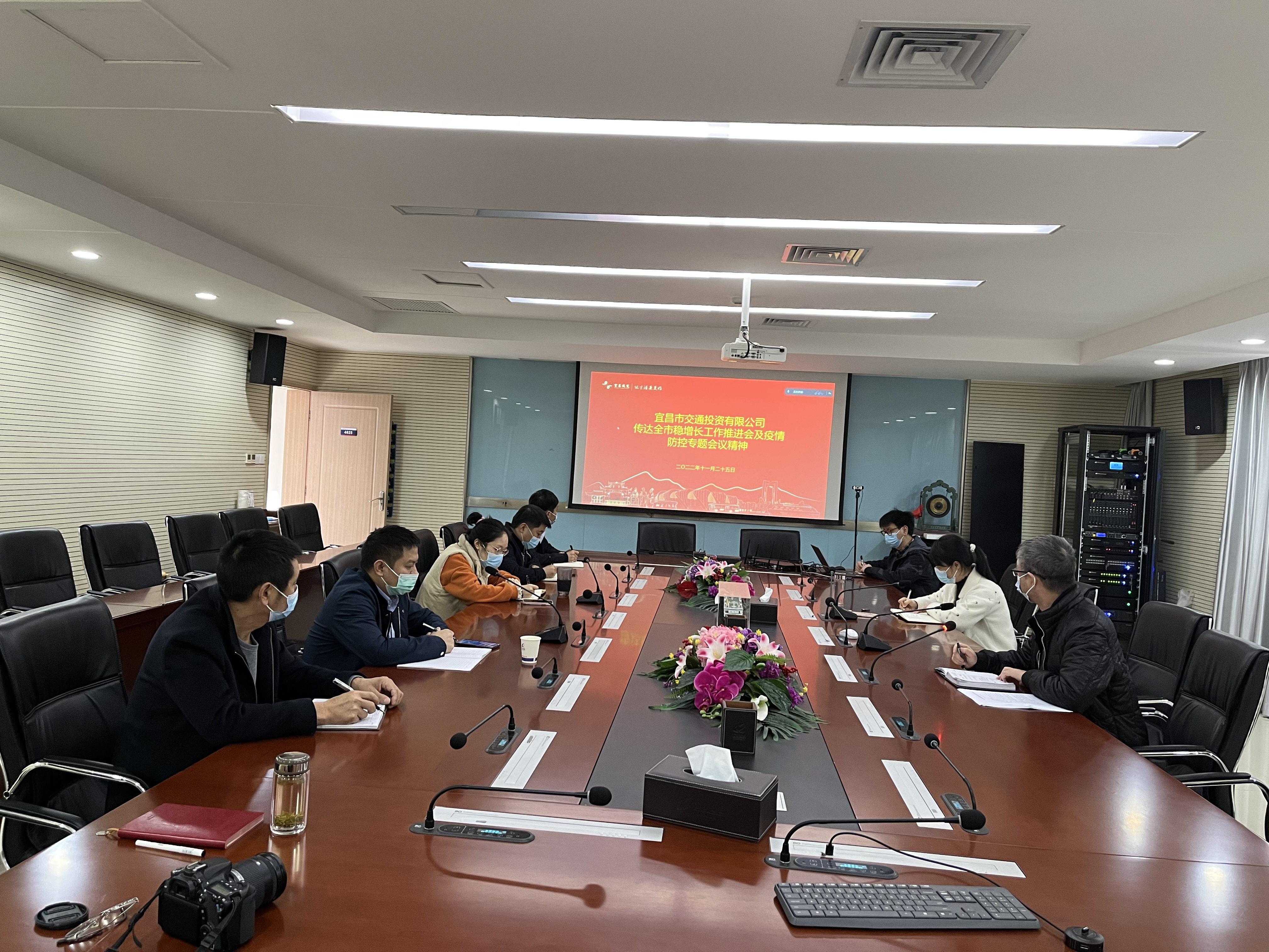 六、11月26日,交投公司召開專題會議(領(lǐng)導(dǎo)班子及部門主要負責人參加現(xiàn)場會,其他干部職工參加視頻會),集中傳達宜昌城發(fā)集團穩(wěn)增長工作推進會暨疫情防控專題會議精神,公司黨委副書記、執(zhí)行總經(jīng)理陳圣偉主持,并對季度項目拉練情況、全市疫情防控情況做了介紹,重點傳達了城發(fā)集團黨委書記、董事長殷俊同志和黨委委員、紀委書記劉仁同志的講話精神。要求各項目負責人必須掌握現(xiàn)場情況,疫情要防住、經(jīng)濟要穩(wěn)住、安全要守住,做到心中有戒、手中有招、肩上有責,發(fā)現(xiàn)問題要以快制快、果斷決策,要不辭辛勞、從嚴管控。在全國各地疫情散發(fā)狀態(tài)下,做到動態(tài)清零常態(tài)化、基層防疫陣地化、聯(lián)防聯(lián)控信息化、工作體系制度化。全體干部職工要打起十二分精神,打好防疫“總決戰(zhàn)”。公司紀委對7個方面內(nèi)容進行了強調(diào)。會后,公司黨委委員、紀委書記黎毅對東艷路本部辦公場所進出卡口、監(jiān)控室、食堂防疫措施落實情況和物資儲備情況進行了檢查,并對不規(guī)范問題現(xiàn)場提出整改要求。